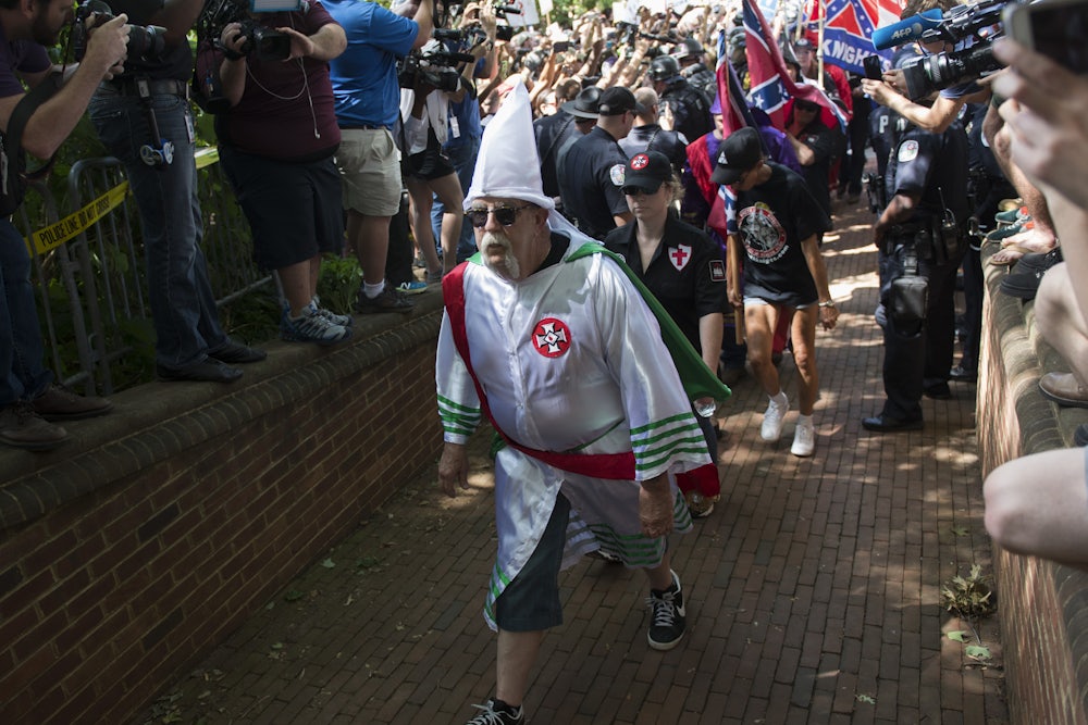If we were only talking about the KKK here, there’d be nothing else to say: Before you organize against a Klan rally, follow the unheeded advice of Charlottesville Mayor Mike Signer, who warned residents before the Klan rally in July to not “take the bait—to deny the KKK the confrontation and celebrity they desire.” But when it comes to the new white nationalists, it’s not quite so clear-cut. Despite the hype, the “alt-right” is another small band of squabbling ideologues and thugs, led by wannabes like Spencer and National Socialist Leader Matthew Heimbach, with the same sociopathic tendencies and runaway egos that crippled the old hate groups from within. But they’re also young—and young men in packs are the most dangerous people in America, both in terms of regular crime and hate crimes. And their ranks, unlike the Klan’s, are growing; they’ve been able to muster 200 of their fellow-travelers for public spectacles, and they’re planning to amass in Charlottesville again on Saturday for a “Unite the Right Free Speech Rally” they’ve been advertising for months.