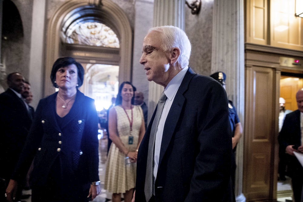 Senator John McCain, now in the twilight of his career, delivered a speech Tuesday on the Senate floor so fraught with drama that it felt like it was out of a movie. Here was a legendary figure, a war hero and a former presidential candidate now stricken with an aggressive cancer who flew, at real risk to his health, across the country to deliver a message to his colleagues about how Washington had lost its way. Bipartisan comity had given way to win-at-all-costs partisanship, he warned. Nor did McCain spare his own party. He lamented that Republican leadership had run roughshod over norms in order to ram through a flawed healthcare reform bill—“a shell of a bill,” as he called it.