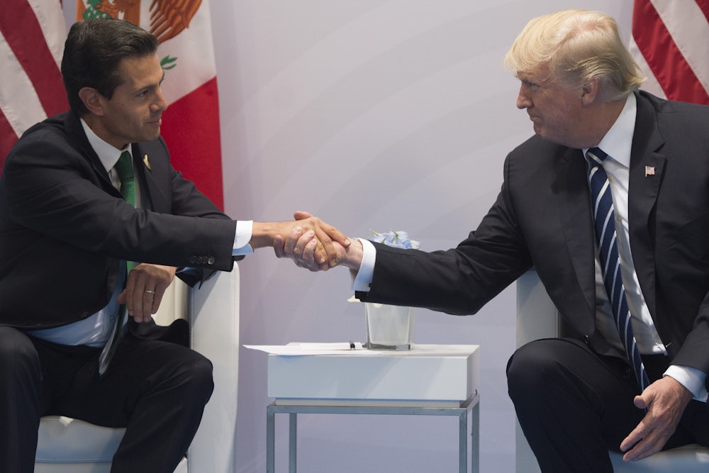 When Peña Nieto affirmed that his position was “that Mexico cannot pay for the wall,” Trump replied, “But you cannot say that to the press. The press is going to go with that and I cannot live with that.” He told Peña Nieto that the funding would “work out in the formula somehow.” They both seemed to agree to put the topic of the wall aside.