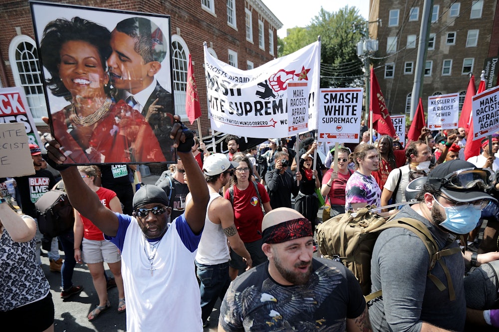 The power of these protests would never have been possible without months and years of effective organizing. In Charlottesville and elsewhere, Democratic activist groups like Indivisible, which rose up out of the shock of Trump’s election, turned out alongside members of Democratic Socialists of America, Black Lives Matter, and the Worker’s World Party. Liberals who began to find their voices in the protests against “repeal and replace” earlier this year have banded together—sometimes uneasily—with leftists who’ve been taking politics to the streets for years. They massed in big numbers this week, and in some places did more than disrupt traffic—in Durham, North Carolina, for instance, protesters pulled down a state of a Confederate soldier, defying a 2015 state law that bans the removal of such monuments.