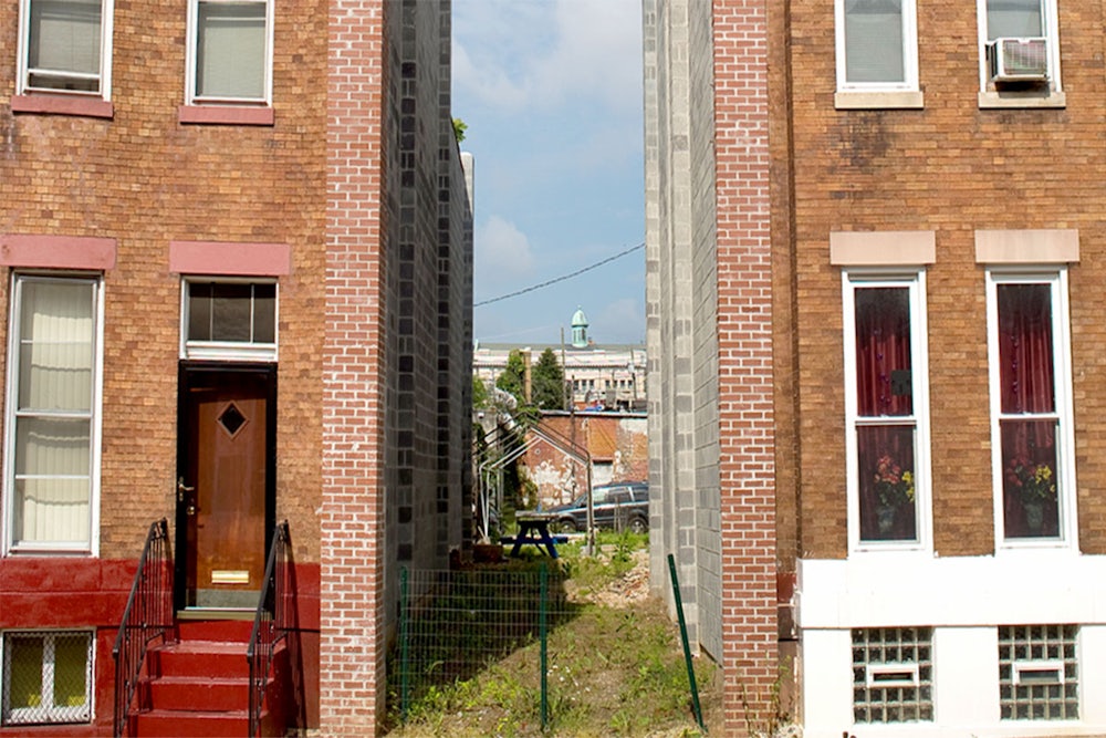 But even as Mitchell and his brother spackled walls and patched leaks, 1906 Boone sat vacant—a moldering eyesore that dragged the entire neighborhood down with it. Whenever it rained, water would collect in the abandoned row house and seep into Mitchell’s basement. To discourage break-ins, he hung his mother’s curtains in the upstairs windows at 1906. But with no one tending to it, the house eventually collapsed in on itself. When I visited the property, it looked like a stage set for an apocalypse film, its walls and floors partially demolished, its roof open to the sky. Bird droppings covered the stairwell. The bathtub was still there. Exposed, squatting precariously on a jagged scrap of what used to be the second floor, the tub felt somehow obscene: a ruin-porn image of a city in crisis.