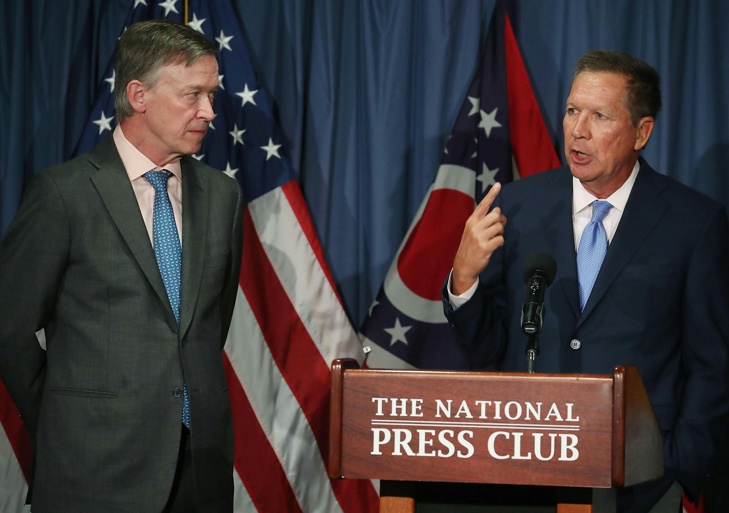 He has traveled abroad, to the very presidential countries of Germany, Great Britain, and Japan. He wrote a book, Two Paths: America Divided or United, to lay out his vision in greater detail. And on Thursday, Kasich and Hickenlooper released a bipartisan plan, endorsed by a handful of other governors, to stabilize Obamacare.