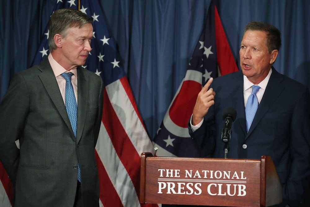 Kasich is clearly planning on a run of some kind. The question is whether he’ll mount a primary challenge against Trump or an independent bid. And given the fact that Republican voters roundly rejected Kasich in the last primary—he finished fourth, winning only one state—the latter seems more viable. Last week, Axios reported that Kasich is mulling a third-party “No Labels”-style run in 2020, with Democratic Governor John Hickenlooper of Colorado as his running mate. But despite Kasich and Hickenlooper’s shared commitment to common-sense politics, their ticket would appeal to a certain subset of the donor class and almost no one else.