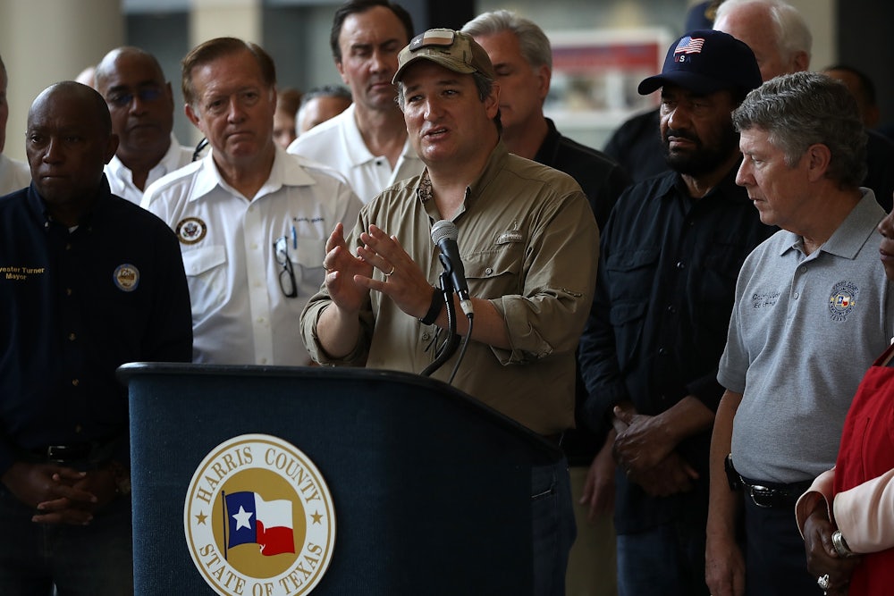 Chris Christie, the Republican governor of New Jersey, supports swift relief to Harvey’s victims, but has been at pains to note the hypocrisy. “I have no sympathy for this—and I see Senator [Ted] Cruz and it’s disgusting to me that he stands in a recovery center with victims standing behind him as a backdrop,” he said on CNN last week. “He’s still repeating the same reprehensible lies about what happened in Sandy [and] called on Congress Wednesday morning to work fast on a bill to aid Texas after Hurricane Harvey.”