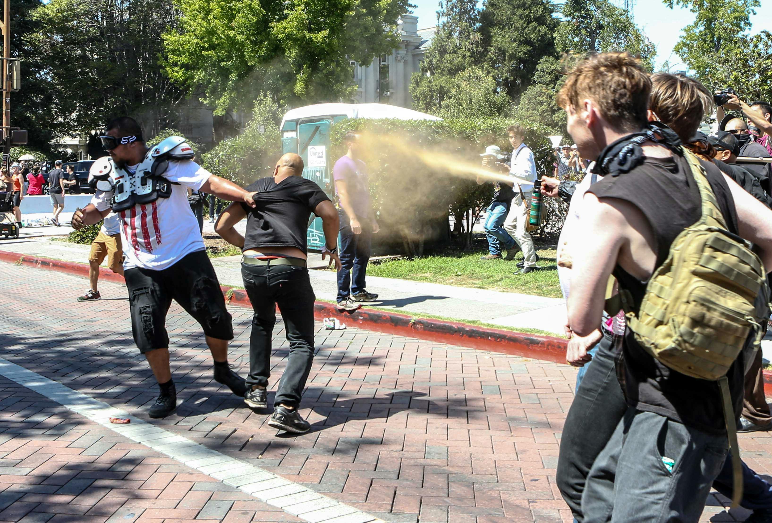But it doesn’t actually matter that Gibson identifies as a person of color or that he permits a Samoan to speak at his rallies. Extremists attend his rallies because they agree with him and they feel comfortable with him. Let’s take another look at that speaking roster. The Samoan is Tusitala “Tiny” Toese, who punched a man half his size at a Portland rally in May. Kyle Chapman, better known as the white supremacist folk hero Based Stickman, is another. Instead of denigrating Berkeley, maybe Weiss should read what its student paper reported about Chapman: