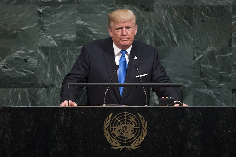 In the lead-up to President Donald Trump’s maiden speech before the United Nations General Assembly, there were whispers that we would see a new Trump. After weeks of being schooled by Chief of Staff John Kelly, the White House’s own Henry Higgins, our nativist president would renew America’s commitment to upholding the world order. With reports that the administration was also considering renewing the U.S.’s commitment to the Paris climate agreement and the Iran nuclear deal, it had the possibility to be a momentous event: A normalization of relations between the U.S. and the rest of the world, after months of upheaval.