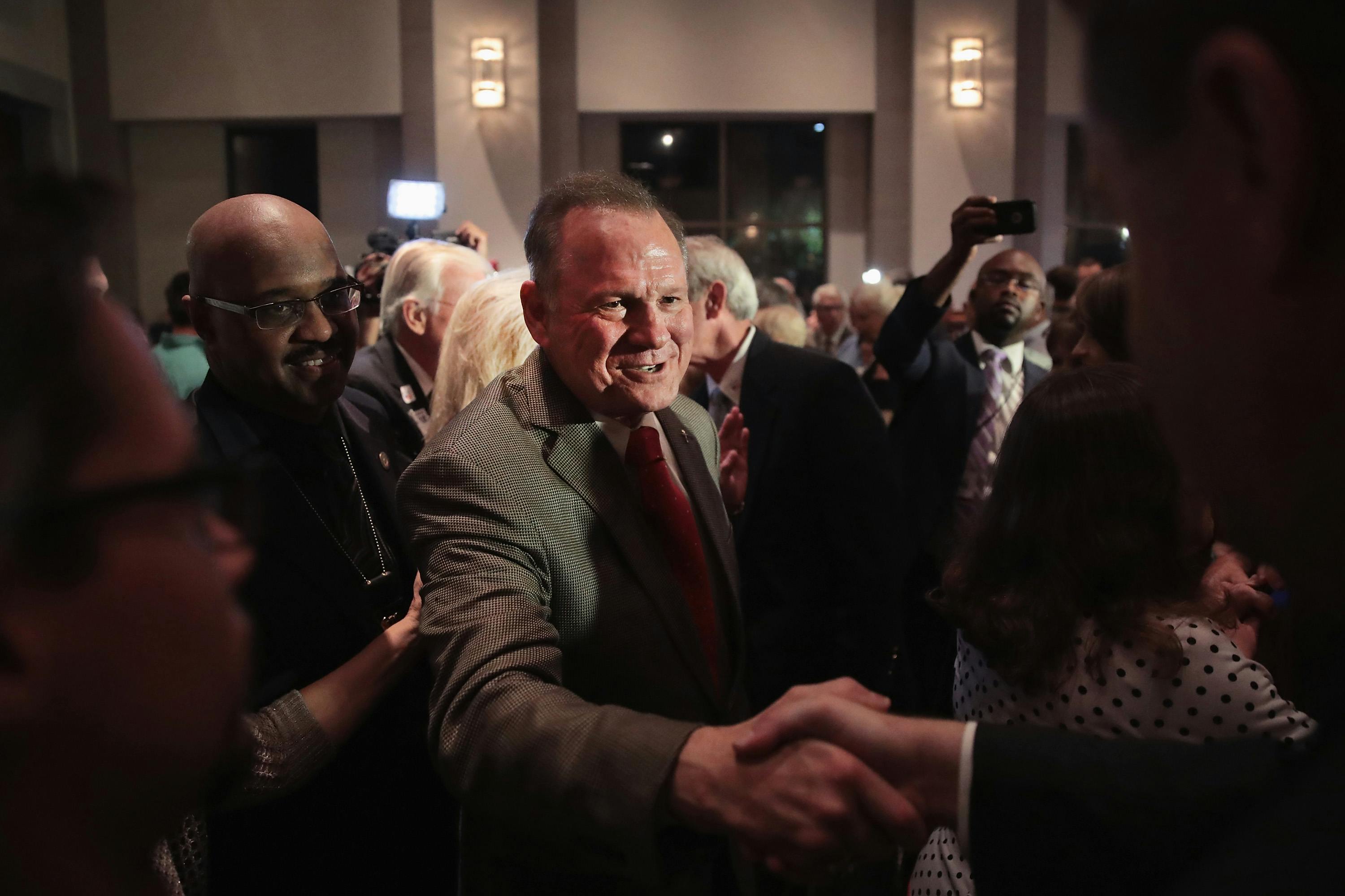 Democrats are getting their hopes up again over a special election in a red state. Alabama Republicans on Tuesday backed Senate candidate Roy Moore, a former chief justice of the state Supreme Court who believes in criminalizing homosexuality, barring Muslims from Congress, and many other vicious and hateful things, over the establishment pick, Senator Luther Strange. “Moore wouldn’t be the most radical figure ever to serve in the Senate,” Mother Jones reporter Tim Murphy wrote, “but as a theocrat he has few peers.” His extremism has Democrats from Birmingham to Washington, D.C., wondering whether they might be able to pull off an upset in one of the most conservative states in the country, stealing a key Senate seat that until recently was occupied by right-wing Attorney General Jeff Sessions.