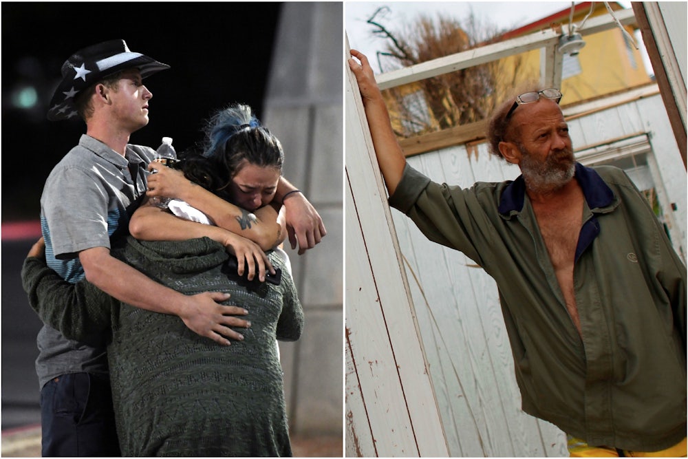 Trump was referring to Sunday night’s mass shooting in Las Vegas, which left at least 59 dead, but similar sentiments could have been delivered after Hurricane Harvey hit Houston, or Irma hit Florida, or Maria hit Puerto Rico. The sameness of the political and media reaction in the face of extreme weather and gun violence is part of a disaster blueprint, where expressions of “horror” are followed by paint-by-numbers statements of “thoughts and prayers.” We have fashioned a script for tragedy and dutifully read from it, regardless of what that tragedy looks like.