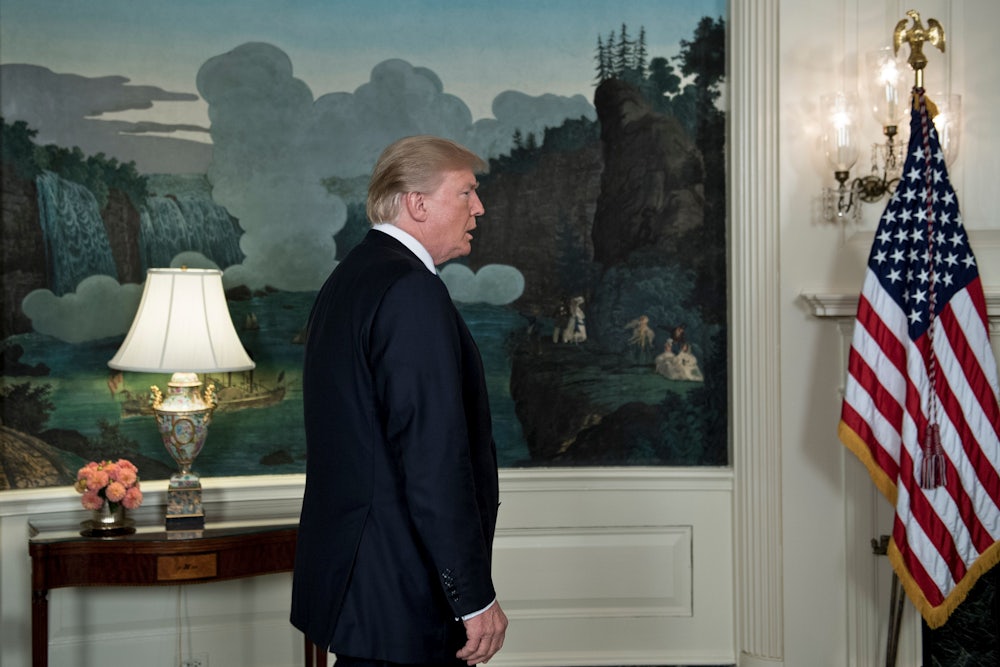 President Donald Trump on Friday did what he does best: He threw a temper tantrum on national TV. To address what he called “the increasing menace posed by Iran,” he announced his refusal to send Congress a routine certification required by law that Iran is keeping its commitments under the 2015 nuclear deal. He also announced “additional sanctions on the regime to block their financing of terror,” and promised, “We will deny the regime all paths to a nuclear weapon.” In doing so, Trump will start a new nuclear crisis, one that he has no idea how to solve—and which may end with Tehran following Pyongyang’s lead, testing thermonuclear weapons and long-range missiles that can strike the United States.