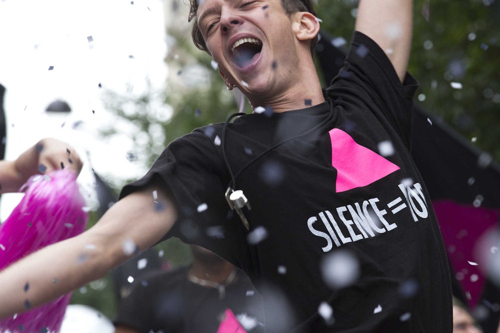 As the group pursues its actions and dances together at night (the soundtrack features classics like Bronski Beat’s “Smalltown Boy”), this couple’s intimacy deepens. The movie’s sex scenes are powerful and touchingly unstylized. Nathan and Sean easily discuss condoms and their mothers; after they have sex, they talk about their own pasts. In a flashback, Campillo creates a highly erotic scene out of Sean’s memory of sleeping with his own high school teacher, the man who infected him with HIV. Sex in BPM (Beats Per Minute) blends handjobs with laughter, hospital scenes with memories of childhood, pointed collarbones with earlobes. In one scene, Nathan wipes the cum from Sean’s stomach, and then the tears from his eyes.