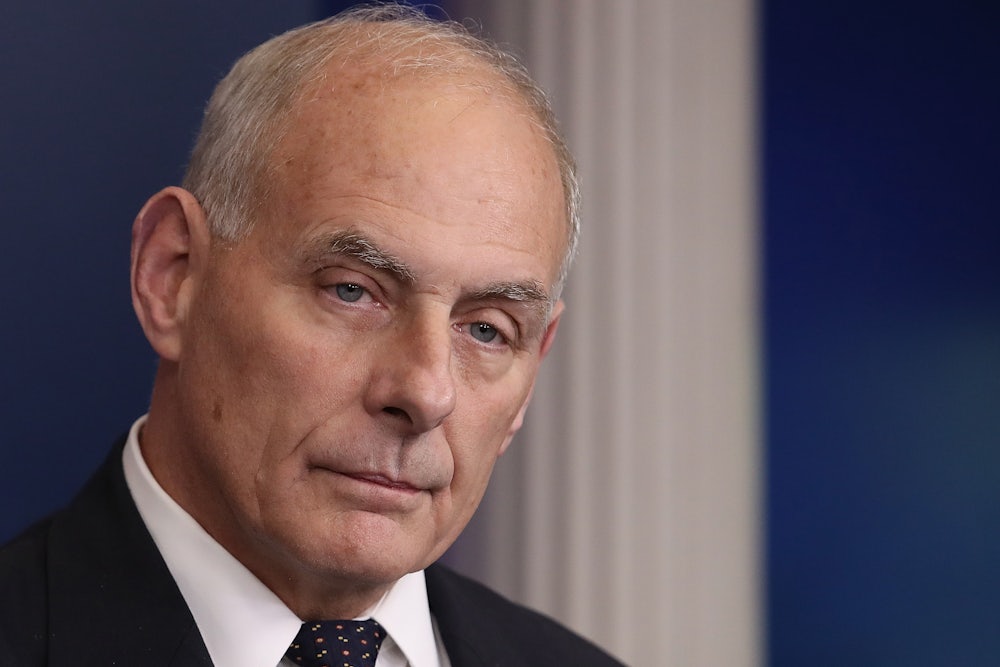 Asked about the distortions in Kelly’s remarks, Sarah Huckabee Sanders used Kelly’s military service to deflect criticism, saying, “You want to go after General Kelly—that’s up to you. If you want to go after a four-star Marine general, go ahead.”