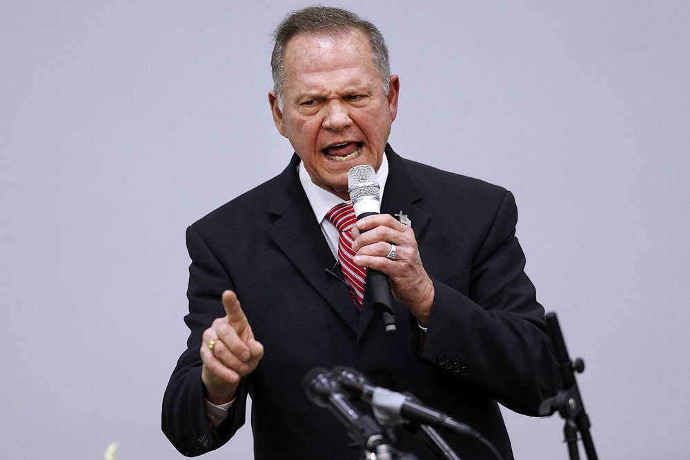 It’s hardly an accident that the Republican Party is going through the same convulsions with Moore that they did with Trump. The GOP is evolving, or rather devolving: It is adjusting to being the party of Trump—and, by extension, the party of Moore. In this sense, Moore’s personal fate doesn’t matter. He could withdraw tomorrow or even lose the election, but the forces Moore represents are in ascendency in the GOP. Moore won the nomination because the Trumpified GOP base wanted a homophobic and Islamophobic senator—accusations of child molestation be damned. These voters may or may not get their wish with Moore, but more men like him will rise to take the mantle. In fact, they already are; they’ve been rising with Trump all along.