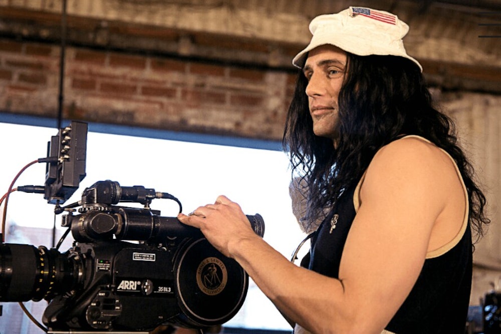 What do Tommy Wiseau and James Franco have in common? Wiseau is the writer, director, producer, and star of The Room, the so-called “greatest bad movie ever made.” Franco plays Wiseau in The Disaster Artist, the new comedy about the making of The Room that he also directed and co-produced. Both are straight middle-aged white men with brown hair (The Disaster Artist calls the authenticity of Wiseau’s hair color into question). Both are wealthy, ambitious outspoken fans of James Dean. That’s where the apparent similarities end.