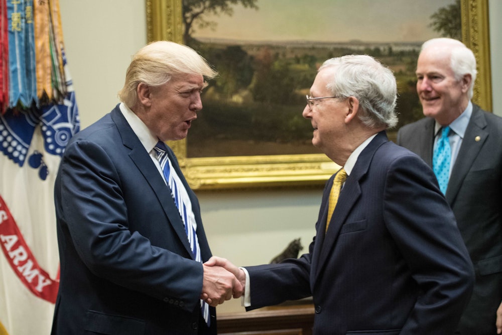 Republicans made this corrupt bargain a long time ago. Mitch McConnell, after all, refused to cooperate when Obama officials insisted that Russian interference be made public in the summer of 2016. The thinking is that the bargain was worth it—that installing a compromised, unqualified, and unstable president was acceptable if it allowed Republicans to fulfill longstanding promises to cut taxes for the rich and decimate the social safety net. The conjunction of events on Friday perfectly expresses just how rotten this bargain is, and the extent to which Republicans have abandoned any pretense of being a responsible party that cares about democratic values.