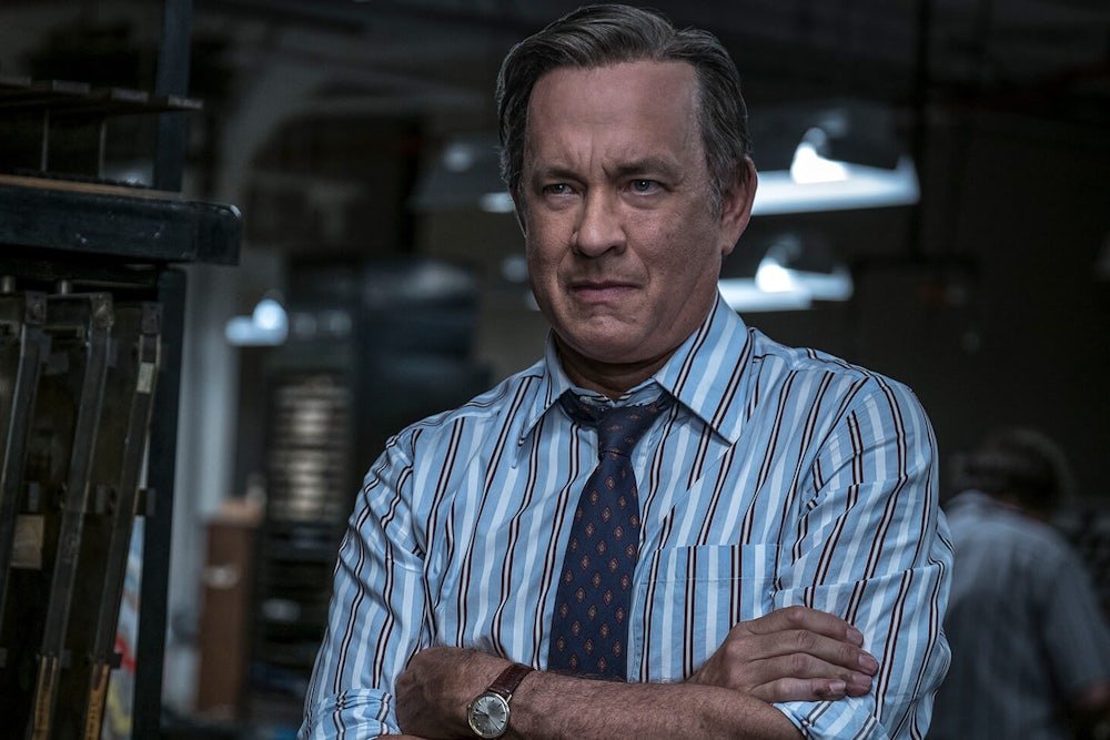 The Post—Steven Spielberg’s movie about the Washington Post during the publication of the Pentagon Papers—is, like many of his movies, a David-and-Goliath story. The theme of a little guy taking on a mighty power—inevitably heartwarming and a bit corny—has dominated Spielberg’s work in some form since Duel, a 1971 television movie he made when he was 24. In Duel the Goliath is an 18-wheel tanker truck operated by a man in cowboy boots with a bad case of road rage. The David is a Plymouth sedan driven by a mild-mannered traveling salesman. The car’s driver survives, and the truck runs off a cliff and crashes like an enormous leaking corpse. The pattern persists: Just think of Indiana Jones deadpanning, “The Nazis, I hate these guys.” In The Post, Spielberg sets the Goliath of the Nixon administration against the publisher Katharine Graham (Meryl Streep) and editor Ben Bradlee (Tom Hanks).