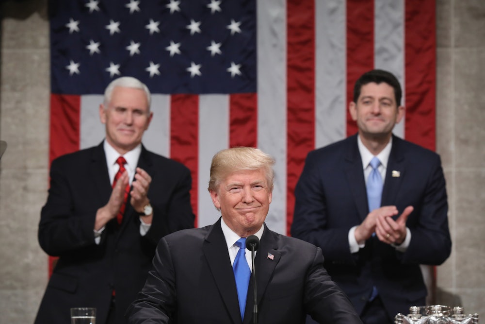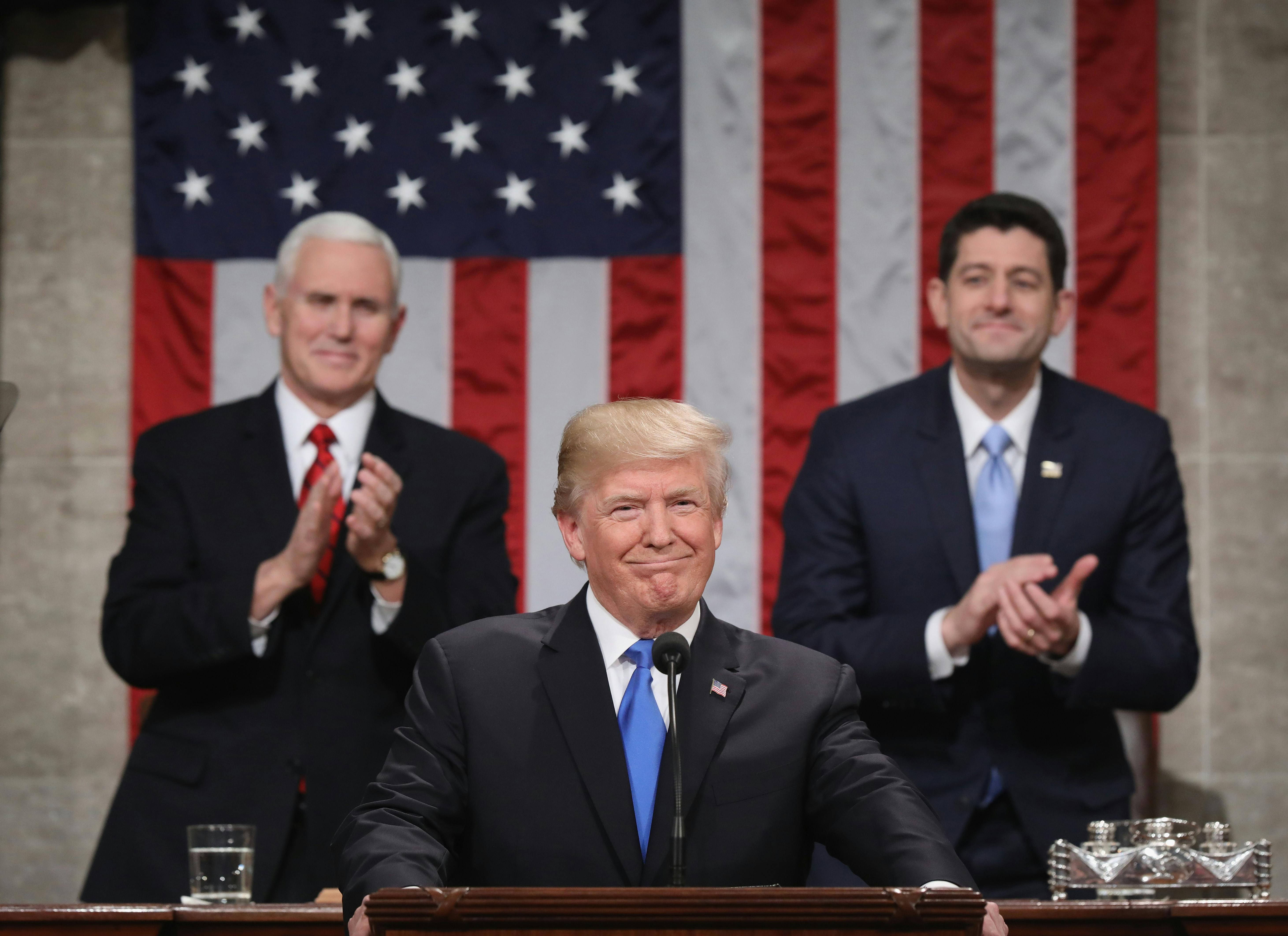 But for the most part Trump stuck to the usual State of the Union bromides. (One example: “We can lift our citizens from welfare to work, from dependence to independence, and from poverty to prosperity.”) He has a knack for making them sound more hollow than they usually do, perhaps because he is living, breathing evidence that the American experiment has taken a horrible wrong turn. Still, the bland ritual of the State of the Union served its purpose. The speech not only communicated his administration’s priorities to the country, but also made them seem normal by the force of that very ritual.