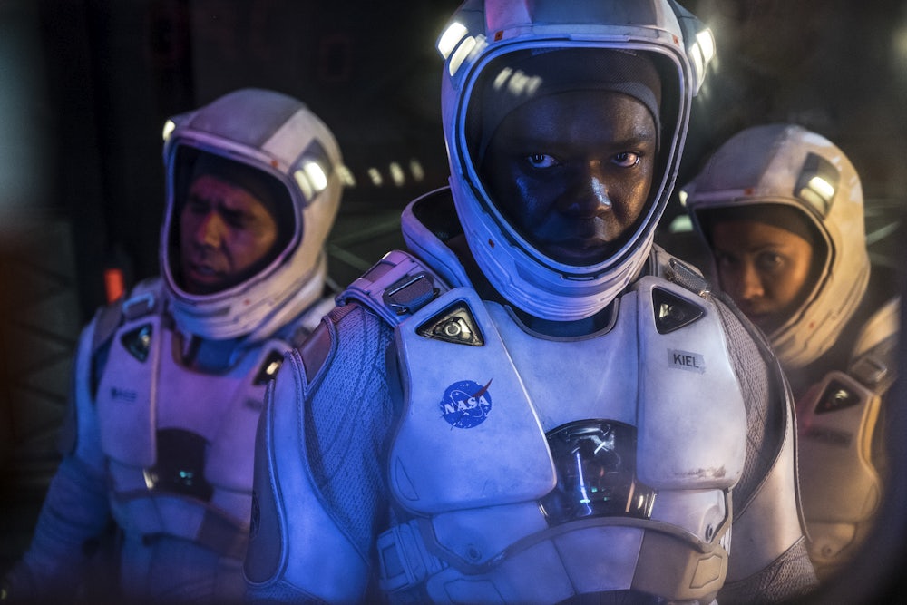 In a whole new departure, The Cloverfield Paradox takes place in space. The excellent Gugu Mbatha-Raw plays Ava, a bereaved mother whose husband is far below on the earth’s surface. Her colleagues are Kiel (David Oyelowo), Tam (Zhang Ziyi), and Mundy (Chris O’Dowd), among others. In one of the movie’s most refreshing features, the cast speaks English but also Mandarin; Tam, in fact, never speaks English.