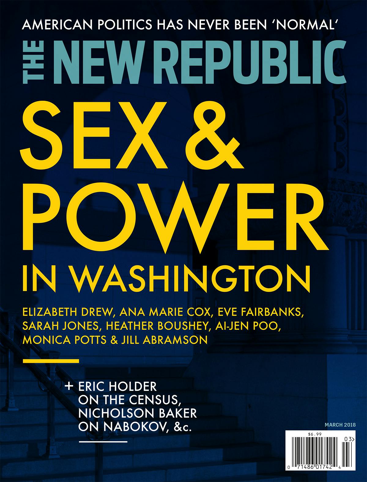 New York, NY (February 8, 2018) — The New Republic today published its March Issue cover story, “Capital Offenses,” in which eight influential women examine how sexual discrimination and harassment works in Washington.