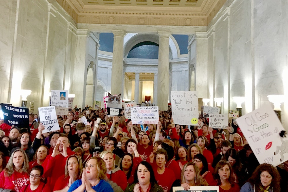 Organizing reportedly began back in November, in a private Facebook group for public school teachers. West Virginia teachers don’t have to join a union, and since a union’s political leverage depends partly on its sector density, the state effectively pits unions against each other for support. The Facebook group, then, created an alternative, grassroots path to direct action.