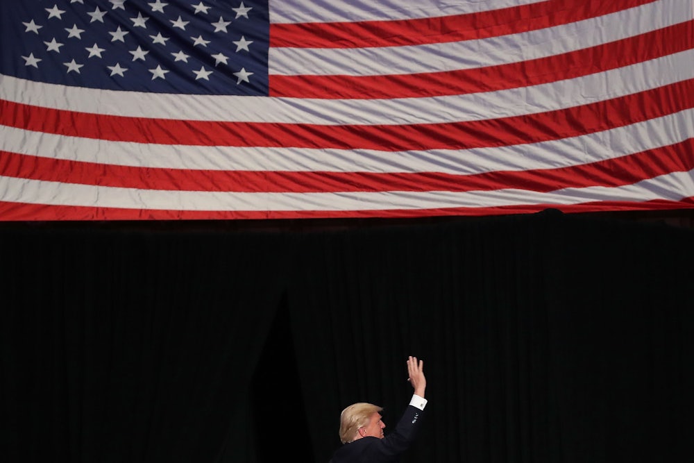 Trump will, if delivering a prepared speech, mouth similar pieties about “the self-evident truth Americans hold so dear, that no matter the color of our skin, or the place of our birth we are all created equal by God.” But this language does not come naturally; when speaking off the cuff—and tweeting—he usually talks about America in simplistic, purely physical terms.