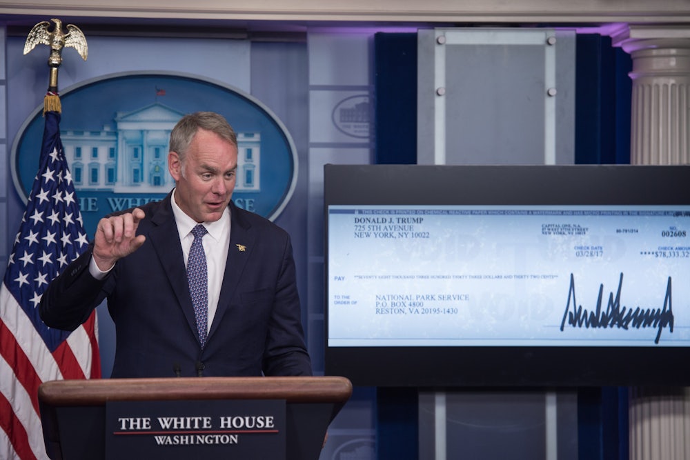 A retina reader would be an extreme measure, but Harrill said other types of security systems could add up quickly—especially if they’re being installed in an old building. The Stewart Lee Udall Department of Interior Building, where Zinke’s office is located, was built in 1936. In many cases, electronics and wiring have to be installed in the frame of the door. “To be honest with you, $140,000 is not really that far out of the ballpark if it’s a high-security type deal,” Harrill said. Whatever kind of door Zinke bought, it certainly makes Environmental Protection Agency Scott Pruitt’s $25,000 soundproof phone booth look like a deal.