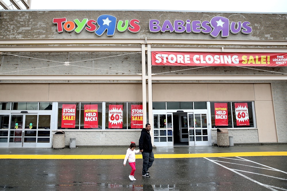 But it’s in retail that private equity’s malign influence has really been felt. Claire’s, Payless, Wet Seal, rue21, and dozens of other retail outlets have all filed for bankruptcy in recent years—and all had been acquired by private equity firms before ultimately throwing in the towel. For all of these companies, Toys ‘R’ Us very much included, private equity was supposed to be a savior, making the necessary cuts to compete in an increasingly fragmented and top-heavy marketplace. But instead, these companies have become burdened with debt that cannot be repaid, while revenue has (at best) stagnated.