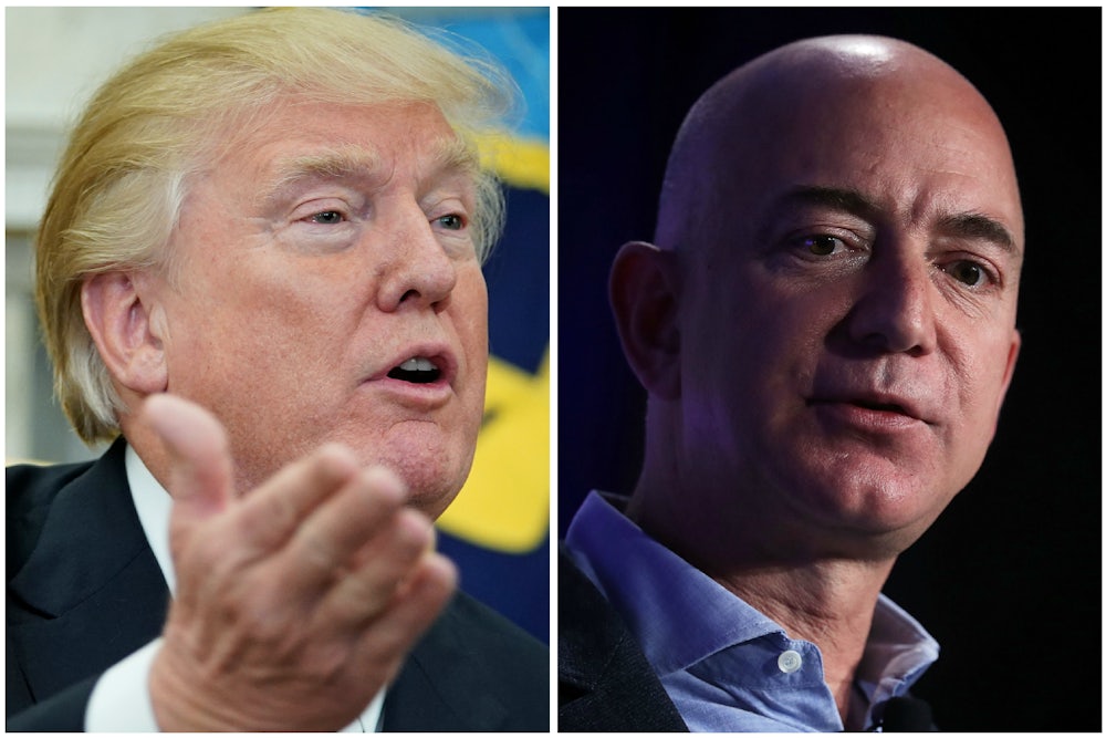 Amazon has a Donald Trump problem. For days now, the president has been tweeting about the online retail giant, accusing it of ripping off the U.S. Postal Service, shortchanging state and local governments on taxes, and using these unfair advantages to put countless retailers out of business. “Only fools, or worse, are saying that our money losing Post Office makes money with Amazon,” he tweeted on Monday. “THEY LOSE A FORTUNE, and this will be changed. Also, our fully tax paying retailers are closing stores all over the country...not a level playing field!”
