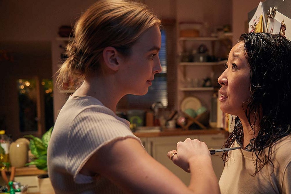 Enter Eve, played with taut, droll skepticism by Oh, who is equally adrift in her work. She is married to a kind man who wears nice sweaters and coaches bridge (yes, the card game) but she is deadened by administrative work. She craves the high-stakes intrigue of the chase, and seems almost envious of the freedom that Villanelle’s line of work grants her (Her first response when she learns that the killer cut open a man’s vein without anyone noticing? “Cool!”). Her interjection that the assassin must be a woman threatens her male boss (who, as we soon learn, isn’t who he says he is) and he sends her to babysit the girlfriend of the murdered politician at a hospital when she would really like to be hot on the trail. In the hospital bathroom, she meets a nurse who tells her to wear her hair down; there is a subtle, crackling energy between them, suddenly Eve goes from sleepy to alert. By the time she returns to the room where her witness is lying, however, everyone, including the guards, has been murdered. The nurse was Villanelle, in London to tie up loose ends. Eve realizes only later that she has met her match, but it is too late; Villanelle is already on her way to another job, and the hunt continues.