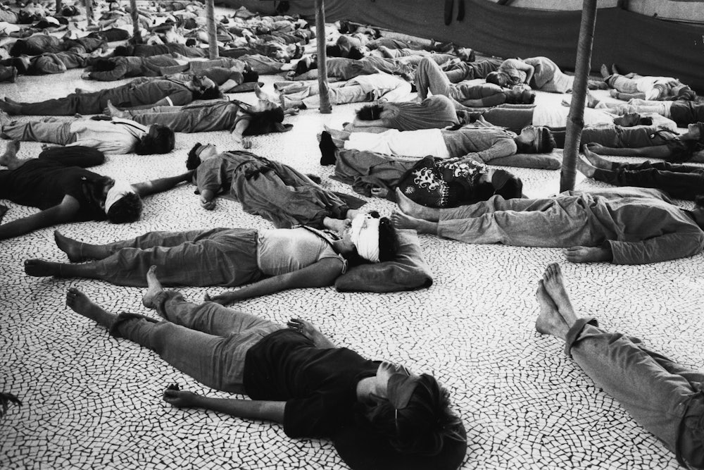 Rajneesh and his group leaders in Pune took the various cathartic therapy and meditation techniques associated with the human potential movement far beyond their usual limits of duration and intensity. Groups in which participants did deep, strenuous, yoga-style breathing exercises—exercises that can overoxygenate the brain and cause dizziness and nausea—would last for hours a day over several days. The ashram’s therapy groups became notorious for episodes of emotional, physical, and sexual violence. Sarah reports that she suffered physical injuries, including two cracked ribs and a concussion, in an encounter-type group in Pune.