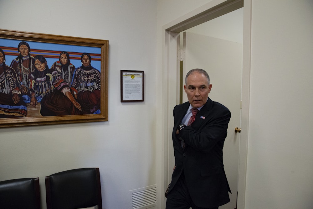 Tuesday’s altercation may be the most high-profile security incident Pruitt has faced in his 15 months as EPA administrator. That’s saying something, considering that Pruitt insists on having a 24-hour security detail composed of 19 agents and at least 19 vehicles, costing taxpayers at least $3 million. Pruitt has repeatedly said this expense—as well as his frequent first-class travel—are necessary because he faces unprecedented security threats. Democratic Senator Patrick Leahy mocked Pruitt last week over that justification, saying, “Nobody even knows who you are.” Pruitt’s treatment of the press suggests he wants to keep it that way.