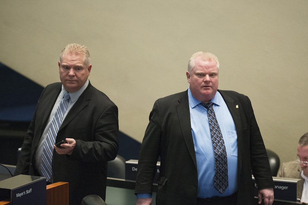 Ford, who served as mayor of Toronto from 2010 to 2014 and is best known for appearing in a 2013 video where he smoked crack, died of cancer in 2016. But he continues to cast a shadow on Canadian politics, with a family rift between his widow Renata Ford and his brother Doug Ford threatening to upend a provincial election in Ontario.