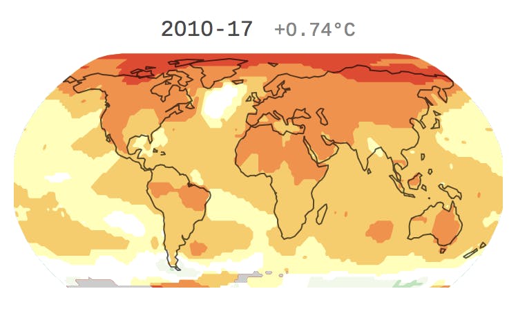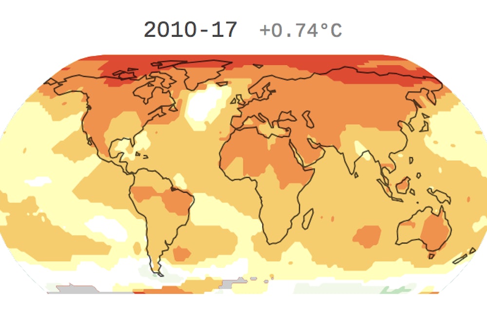 Using NASA data, Axios has mapped Earth’s temperatures from 1880 onward, and it’s a grim sight. The entire globe has warmed since recording began, but incongruently: The North and South Poles appear to be warming faster than anywhere else on the planet. “That Arctic, for example, is warming at more than twice the rate of the rest of the globe, melting sea ice, glaciers and permafrost,” Andrew Freedman wrote on Thursday.