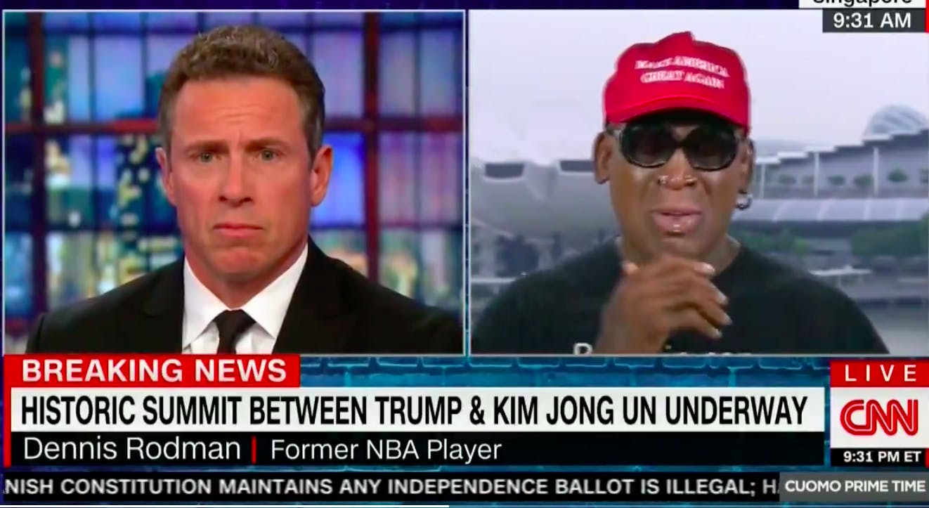 When the history of the groundbreaking meeting between Donald Trump and Kim Jong Un is written, pride of place will be given to the role played by basketball great Dennis Rodman, at least if CNN is to be trusted. The cable news network had Rodman on for an inordinate length of time.