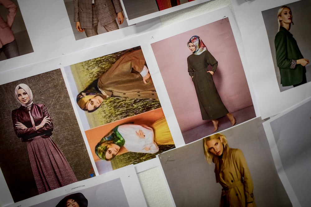 Media in the United States, however, seemed to be more open to modesty than those in European countries. In 2016, the same year as the burkini incident, Vanity Fair described the phenomenon as “More is More: The Rise of the Modest Fashion Movement.” Profiling a Miss USA Minnesota contestant who had chosen to wear a headscarf throughout the competition, the essay argued that the covered-up contestant was “indicative of a larger movement that’s been happening in fashion for a while.” The Muslim consumer market for conservative clothes had buoyed retailers from Dolce and Gabbana to H&M and sparked productions of Ramadan collections and designer hijabs. But the modesty movement is not just a Muslim phenomenon: The style of the Duchess of Cambridge and the Olsen twins have been offered up as examples of conservative yet distinctive fashion—so have the increasingly popular high-necked blouses, square tops that hide curves, culottes and jumpsuits.