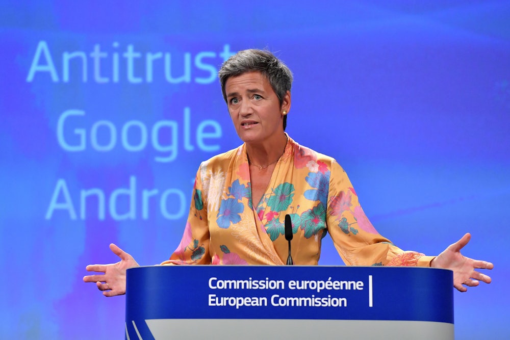 The EU’s decision to slap Google with a $5 billion fine is not about Donald Trump and it certainly has nothing to do with the trade war that the American president kicked off earlier this year. Vestager’s investigation of Google began eight years ago and is still ongoing. While it’s tempting to treat the fine as a “tariff,” as some in the business media have done, that misleadingly suggests it comes in response to Trump’s protectionist push.