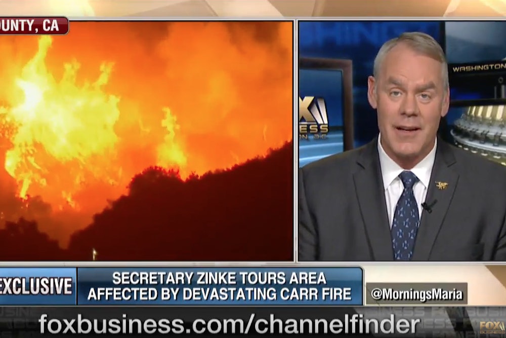 “Alls you have to do is talk to the [firefighters],” Zinke said, claiming they would cite forest management as their biggest problem and not climate change, which is prolonging the season and making extreme blazes more likely. And yet, last week, the assistant deputy director of Cal Fire told The New York Times the opposite.“Let’s be clear,” he said. “It’s our changing climate that is leading to more severe and destructive fires.”