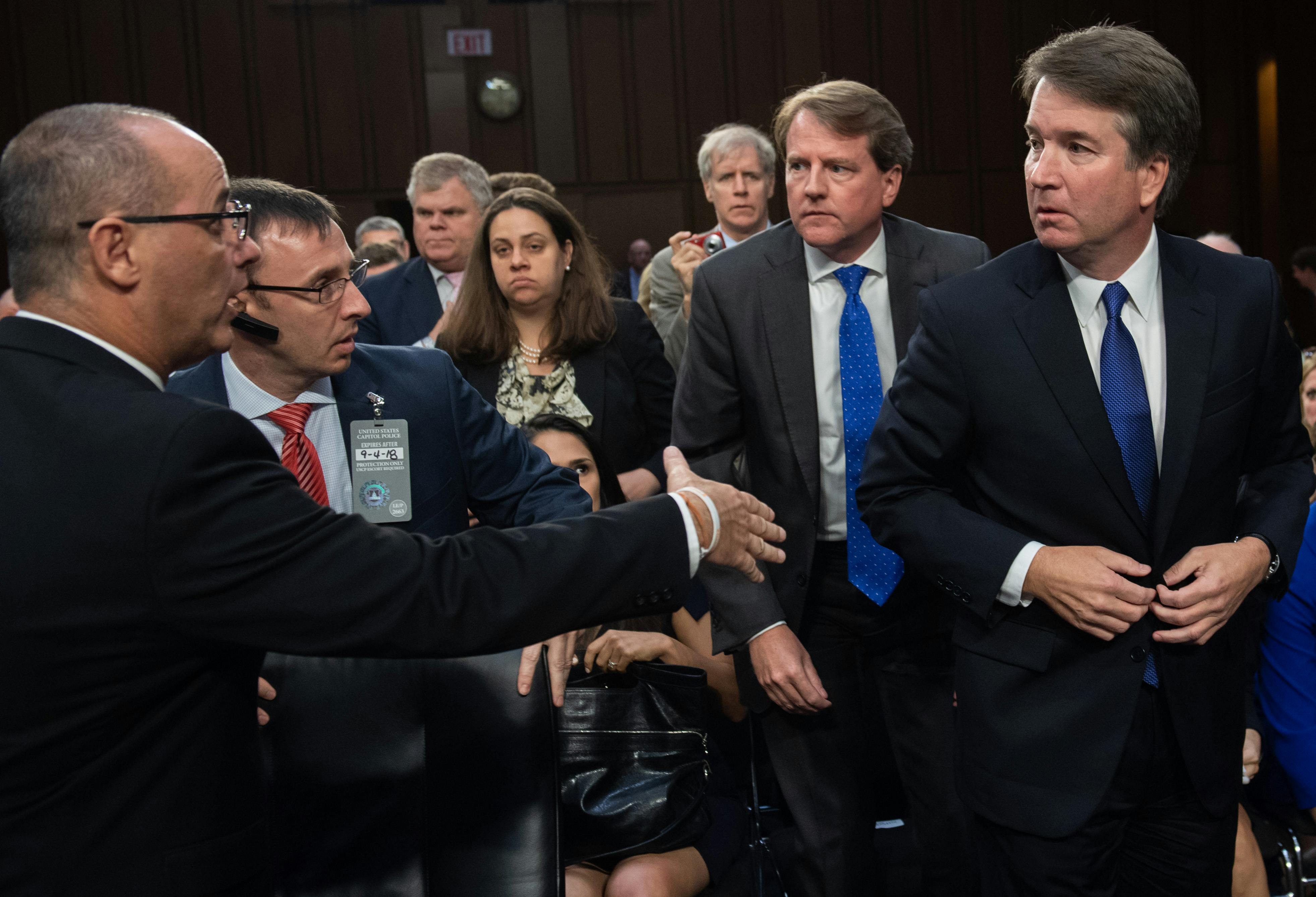 As Judge Kavanaugh left for his lunch break, an unidentified individual approached him. Before the Judge was able to shake his hand, security had intervened. https://t.co/ylOhtA1s6G