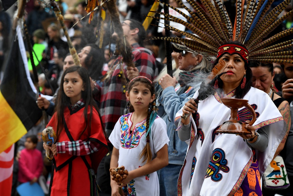 “The President has a long record of attacking Native Americans,” Simon Moya-Smith, a citizen of the Oglala Lakota Nation, argued in 2017. “He pushed through the Dakota Access Pipeline, which violates the Native American land and threatens indigenous lives and water. And while that pipeline was already leaking like a garden hose with bullet holes, he resurrected the Keystone XL Pipeline, which again is in direct violation of our sovereign treaty rights.” Moya-Smith also mentioned Trump’s frequent use of the name “Pocahontas” as a slur directed against Elizabeth Warren.