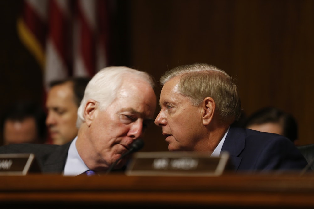 Trying to rally wavering Republicans, Graham argued that defending Kavanaugh was crucial to saving the nomination process. “Let me put it this way to my Republican colleagues: If this becomes the new standard where you have an accusation for weeks, you drop it right before the hearing you withhold from the committee a chance to do this in a professional timely fashion when they say they’re going to do this is, to delay the vote, get the Senate back in 2018 so they can fill the seat, I don’t want to publicly reward that kind of behavior,” Graham argued. “I think we’ve been very fair. And to my Republican colleagues: If you can ignore everything in this record, an allegation that’s 35 years old, that’s uncertain in time place date and no corroboration—if that’s enough for you, God help us all as Republicans, because this happens to us, but this never happens to them. Let me tell my Democratic friends: If this is the new norm, you better watch out for your nominees.”