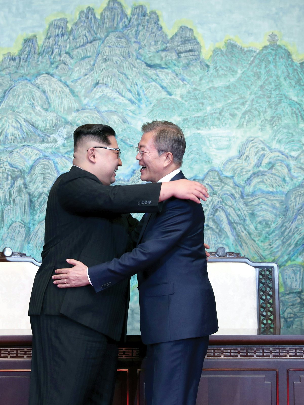Moon was born in a war refugee camp in 1953 to parents who had fled the northern province of Hamgyong. He was jailed twice as a student for participating in protests against the dictatorships of president Park Chung-hee (father of Park Guen-hye), who staged a military coup in 1961 and ruled South Korea until his assassination in 1979, and Chun Doo-hwan, who took over in 1980. After his release from prison, Moon founded a human rights law firm with Roh Moo-hyun, who also went on to become president, in 2003. In 2004, while serving as a presidential secretary, Moon accompanied his mother to reunite with her sister at North Korea’s Mount Geumgang resort, as a part of Roh’s Sunshine Policy of engagement with the North. (The Sunshine Policy was an economic and intergovernmental policy, unilaterally initiated by South Korea in 1998; it was formally abandoned and declared a failure by the South Korean Ministry of Unification in 2010, after conservative Lee Myung-bak came to power.) During his presidential campaign, Moon vowed that if elected, his first tour out of the country would not be to the United States, as was traditional, but to North Korea. (His first trip, in June 2017, ended up being to Washington, D.C.) He had already met with Kim Jong-un twice before Trump’s summit in Singapore, in April and May.