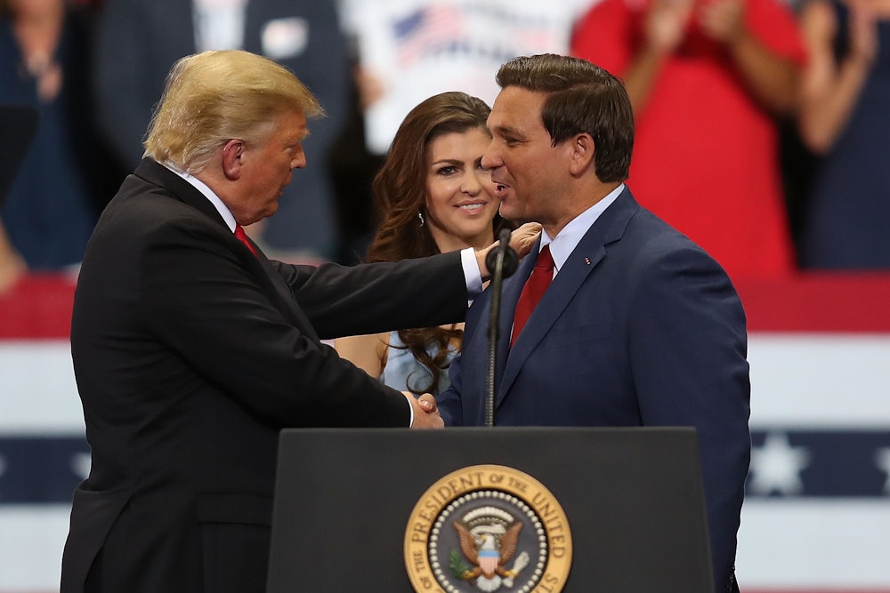 Trump praised some local Florida Republicans, but his approbation was based on them being loyal foot soldiers in the cause of Trumpism. One he singled out for celebration was Congressman Francis Rooney. “So great to me on television,” Trump said. “I love it when he defends me. He’s brutal. He gets the job done.”