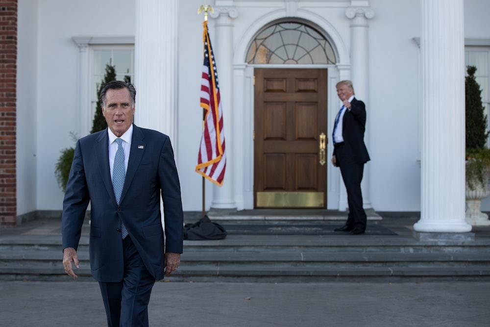 Driving down the highway, singing a Johnny Cash song, seemingly without a care in the world: Romney was having a pretty good day. He had just easily won election to the U.S. Senate, replacing Orrin Hatch. After spending much of 2016 sparring with Trump—including a blistering speech in which Romney declared him unfit for office—the two had seemingly come to a truce. During the campaign, Romney largely steered clear of Trump, and Trump largely steered clear of Romney.