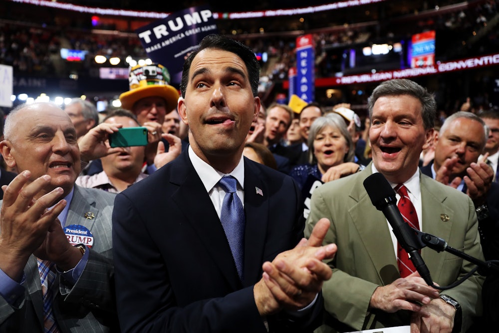 Has the Republican Party’s grand experiment in union-busting finally come to an end? Scott Walker, the Republican governor of Wisconsin, rose to national prominence in 2011 when he passed a landmark bill dealing a blow to unions in the state and across the country. With Act 10, Walker stripped public workers of their right to collectively bargain, gutting their salaries, health care, and pensions. He then survived a vigorous recall effort, which featured 100,000 protesters storming the capitol rotunda in downtown Madison.