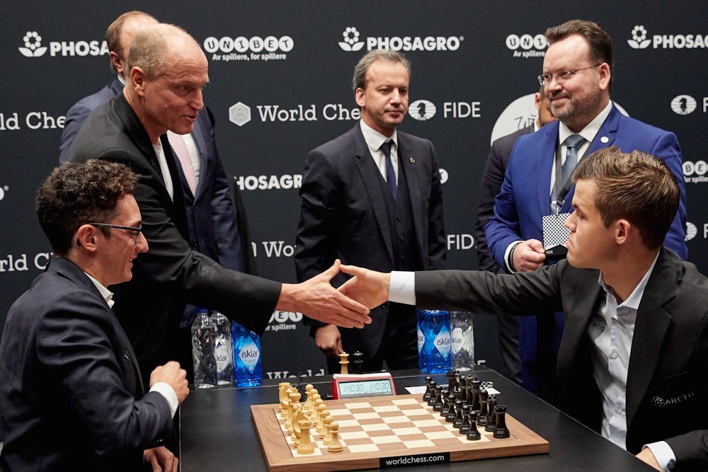Tønsberg, the small, Norwegian fishing town that produced Carlsen, may not provide the political drama of the USSR. Neither would the champion, a Porsche-endorsed prodigy low on modesty, have won invitations to the Supreme Soviet. But in the diminutive Caruana, a fan of yoga and Kendrick Lamar, America has a genuine shot at ascending the game’s summit. Much of that is thanks, in typically capitalist fashion, to the largesse of Rex Sinquefield, a retired billionaire whose St. Louis Chess Campus has been Caruana’s home since 2014. And this championship has even acquired a Hollywood following: Woody Harrelson played the ceremonial first move in London, to a chorus of camera shutters.