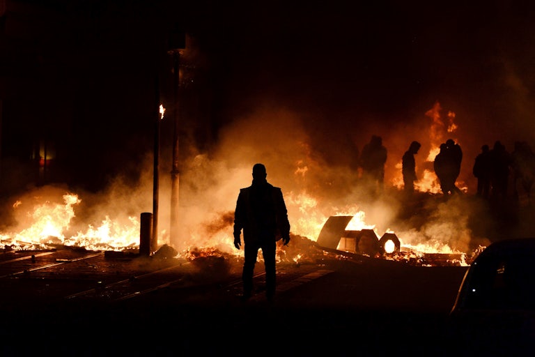 But while one might expect the far-right to flourish in the midst of fake news and diffuse anger, significant parts of the left have responded to the idea that Macron is an “ultra-neoliberal”—so much so that they have chosen to be a sidecar to the destabilizing agenda of the far-right. Jean-Luc Mélenchon—leader of the far left La France Insoumise, or Insubmissive France—expressed in a long Facebook post his “fascination” with Éric Drouet, saying of the gilets jaunes that “their rising, their incredible aptitude for combat, bewilders those who look down at the people from on high.” Mélenchon compared him to the historical Jean-Baptiste Drouet who recognized Louis XVI as he attempted to flee Paris, leading to the king’s arrest in Varennes.