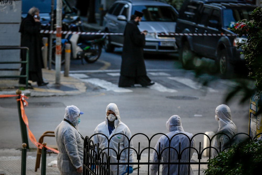 The posh Athenian neighborhood of Kolonaki is a hilly expanse of high-end boutiques, jewelry shops, museums, and art galleries. It’s an area of relatively untouched wealth, and even at the tail end of the Greek financial crisis, there’s enough to celebrate during the holiday season that the neighborhood is adorned with glittering lights and festive wreaths. Those decorations were still up last month when, two days after Christmas, a bomb exploded in front of the district’s Agios Dionysios church.