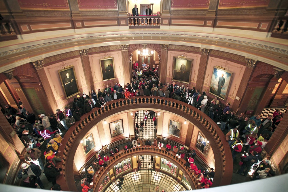 To the relief of the hundreds of protesters who showed up at Michigan’s capitol in Lansing to protest the deluge of Republican bills, the union recertification proposal didn’t get enough votes to pass. But many others did, including bills to minimize the impact of a minimum wage increase, limit paid sick leave, restrict ballot initiatives, and curb the power of the incoming governor. During Wisconsin’s lame duck session, Republican lawmakers pulled a similar stunt, passing a number of bills transparently designed to rein in the authority of the incoming Democratic governor just weeks before he took office. While the union recertification was by far the most direct ALEC copy-cat, there were several others introduced in the Great Lakes states that, according to Brad Bauman of the Stand Up to ALEC coalition, “have ALEC DNA all over them.”
