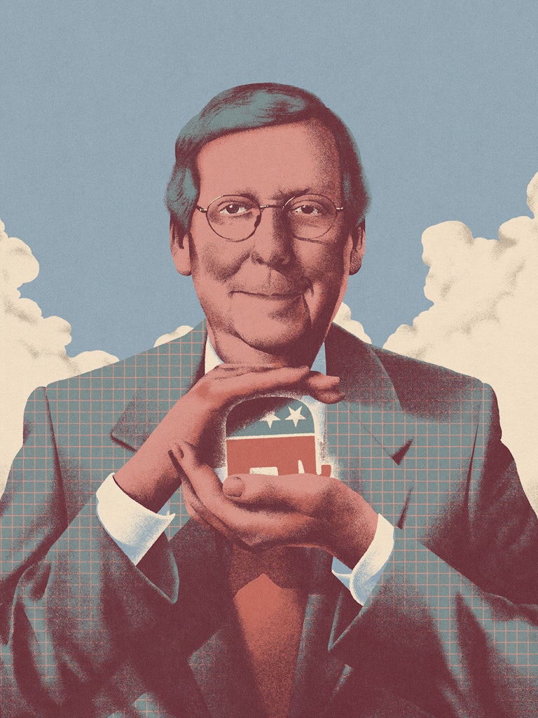 When magazine writers go for the McConnell profile, they usually run aground on the rocks of his complete non-presence. There’s not much in the way of illuminating personal anecdata in the man’s biography, so they cast him as the Master Dealmaker despite his lack of actual made deals—he tends to get a lot of credit for belatedly signing off on unsatisfactory ends to artificial crises that he, through inaction, allowed to fester—or the man beset by, and at the risk of losing his power to, an unwieldy new class of right-wing nuts (the Tea Party, and then Trump).