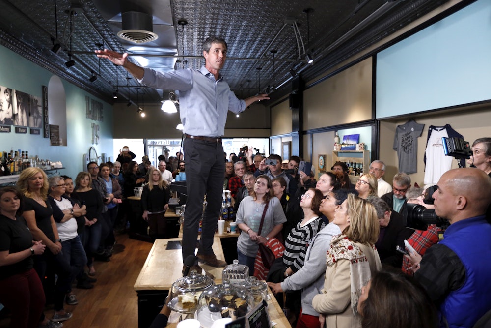 It’s a clever little paragraph. O’Rourke, ever possessive of a retail politician’s full arsenal, draws out a man’s life story—and seems to be suggesting a parallel with his own. The hard work and struggle of owning a small business in America is not, ultimately, that different than being one of the two or three most popular young Democrats in the country. They both need breaks. They both come back stronger.