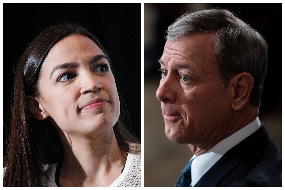 Every major Democratic policy would need to survive scrutiny by the justices. So how would the Green New Deal fare if it reaches the high court? This isn’t an easy question to answer, partly because lawmakers have yet to draft a proposal. Early last month, Representative Alexandria Ocasio-Cortez introduced a resolution recognizing “the duty of the Federal Government to create a Green New Deal”; 90 House Democrats have cosponsored it, and multiple Democratic presidential candidates have expressed support for it. But the resolution lacks the specificity of a bill. In fewer than 2,000 words, it outlines the Green New Deal’s goals, which include not only net-zero greenhouse gas emissions and renewable-energy investment but a job guarantee, universal healthcare, and more.